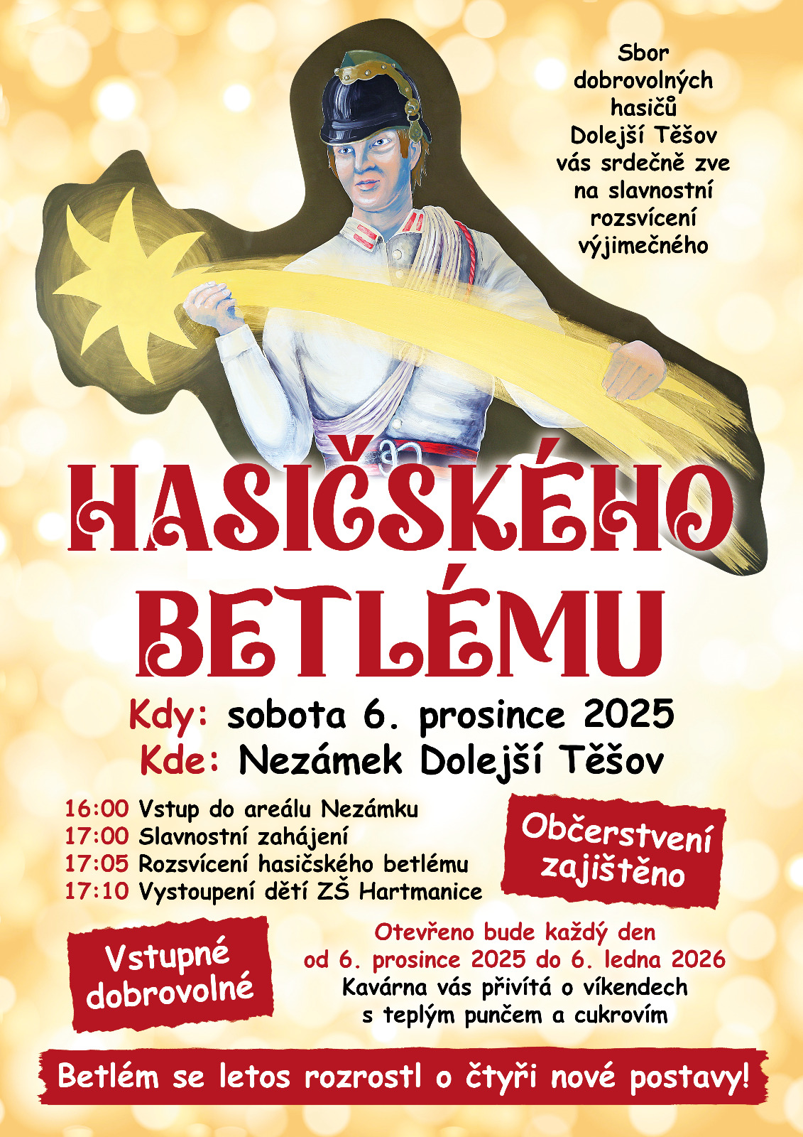 Betlém bude přístupný od 6. 12. 2025 a nejlépe vynikne za tmy, kdy bude krásně nasvícený.
